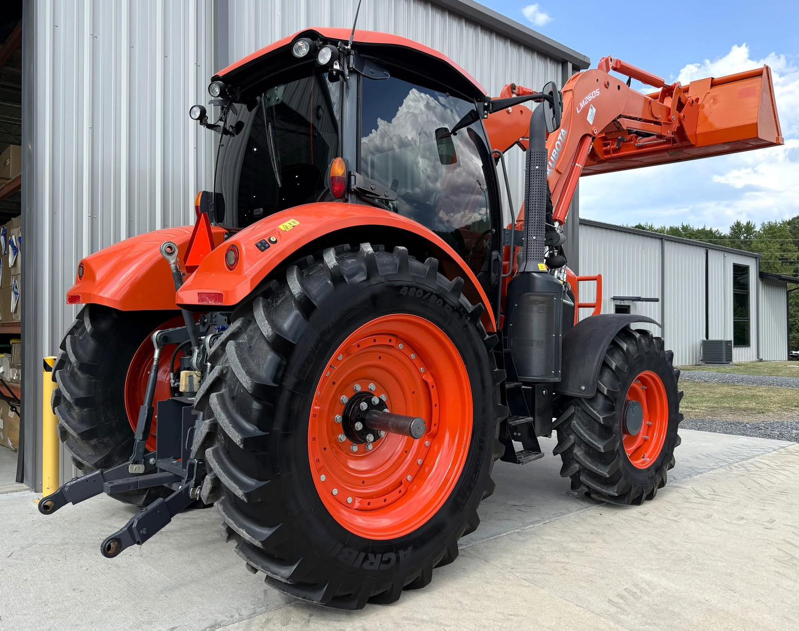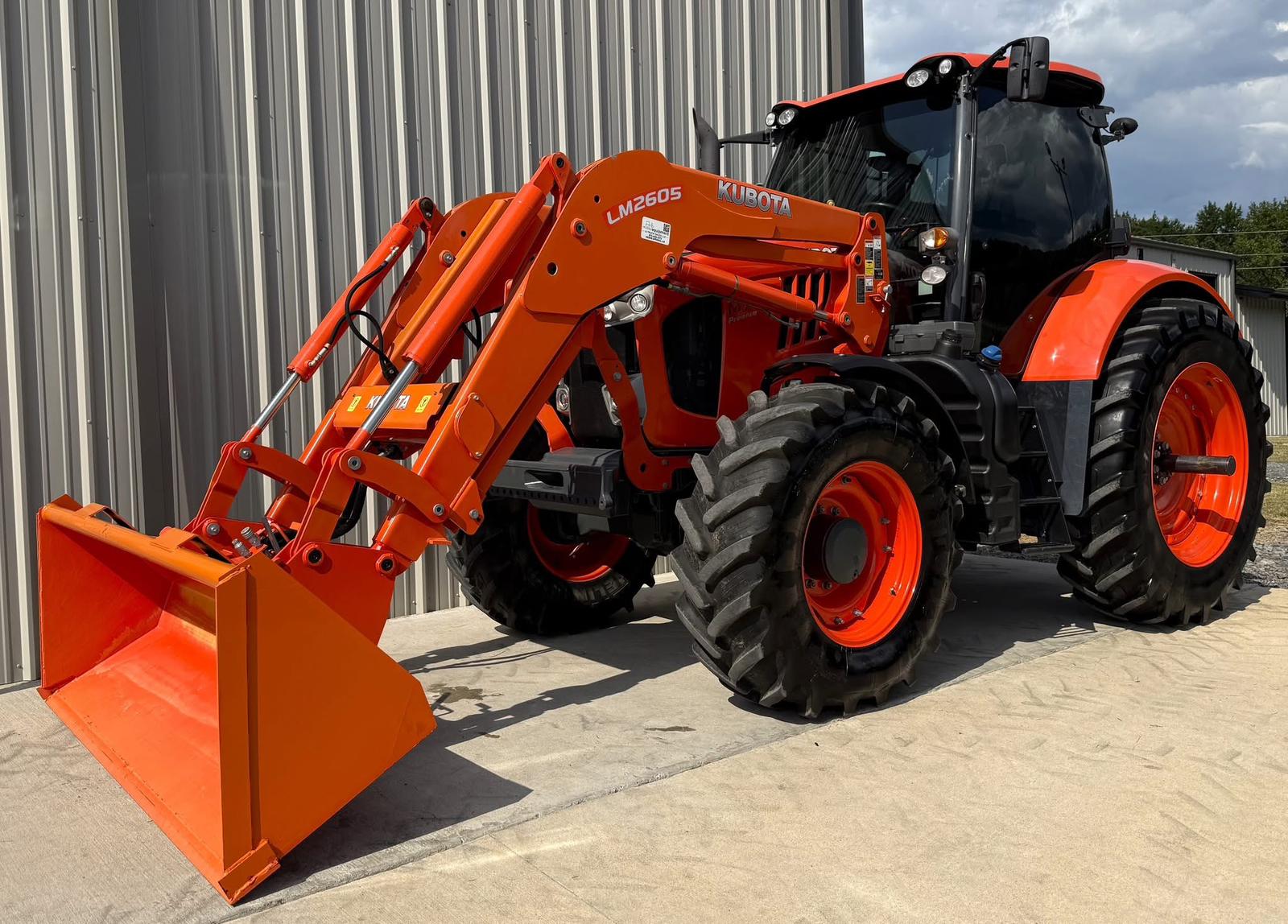2017 Kubota M7-131 Deluxe With Quick Attach Loader & Bucket, 543 Hours, 4×4, 131 HP Diesel Engine, 4 Rear Remotes, 540/1000 PTO, 3 Point Hitch, Extendable Draft Links, Cab, Heat, A/C, Radio, Tilt Steering Wheel, Power Reverser, 24×24 Power Shift Transmission, Air Ride Seat, Buddy Seat, Digital Display Monitor, Joystick Loader Controls, 3RD Function On Loader, Tinted Windows, Radial Rubber, Grill Guard, Very Nice Loaded Up Tractor! No Known Issues.