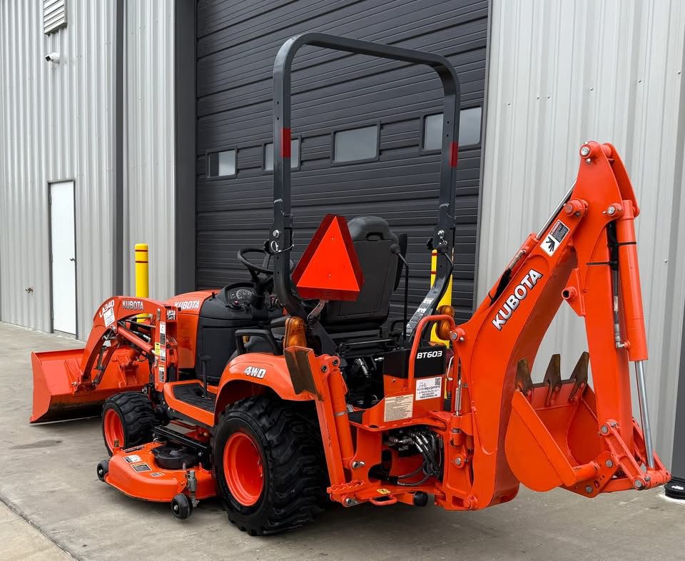 2020 Kubota BX23S With Quick Attach Loader & Pin On Bucket, 342 Hours, 4×4, 23 HP Diesel Engine, 540 PTO, 3 Point Hitch, 60″ Mower Deck, Suspension Seat, Hydrostatic Drive, Tilt Steering Wheel, 2 Post Rollbar, Kubota BT603 Backhoe Attachment, Swivel Seat, Joystick Loader Controls, Toolbox, Cup Holder, Good Strong Tractor! No Known Issues.